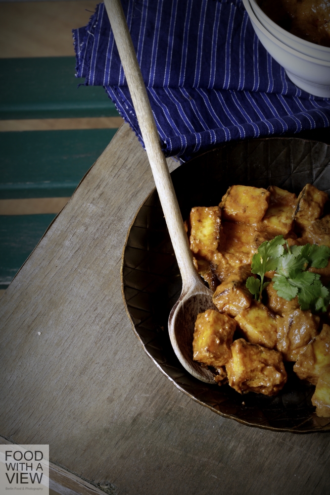 I tried three recipes, Paneer Tikka Massala, small mung dal cakes in spicy broth, and Goa-style egg’s Balchao, and we just loved all of them. Indeed, the dishes have been among the best Indian treats we ever had, and although I have only very little experience in Indian cookery and can’t judge the authenticity of Anjum’s recipes, it tasted very Indian to our tongues, warm and spicy, rich and comforting. There are so many recipes on my list for further cooking, Pistache curry, Korma with cashew nuts and dried abricots, Scottish eggs in a lentil’s cruts, mango paneer salad, cardamom kulfi and many, many more… Love it!