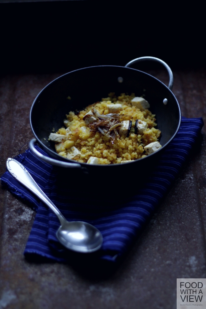 Jeremias Riezler aus dem schönen Kleinwalsertal war als nächstes an der Reihe mit Mais-Ribel mit Räucherziger aus dem Kapitel Selchspeck und Steckerlfisch: Vom Rauchgeschmack in der Alpenküche. Räucherziger oder geräucherten Ricotta konnte ich keinen auftreiben, wohl aber Ricotta al forno im Bioladen meines Vertrauens, und den Ribel – ein grobes Maismehl, das im Schweizer Rheintal hergestellt wird – habe ich wie vorgeschlagen durch Polenta ersetzt. Die Anweisung, letztere gut durchkochen zu lassen, wäre für Anfänger vielleicht nicht genügend präzise gewesen. Ebenfalls skeptisch gestimmt war ich nach einem Blick auf die Mengenangabe für die zu Schmalz zu verkochende Butter: stolze 250 g auf eine Menge Polenta bzw. Ribel, die aus 250 g Grieß und einem Liter Milch zubereitet wird. Ich habe das alles brav mitgemacht und die Polentawürfel darin krümelig rührgebraten. Das Gesamtergebnis war uns zu fettlastig, aber das ist natürlich Geschmacksache. Ich habe eine zweite Version mit nur der Hälfte Butterschmalz versucht und diesmal um der Räuchernote willen Scamorza affumicata verwendet, und nun war es perfekt. Ein köstliches einfaches Essen.