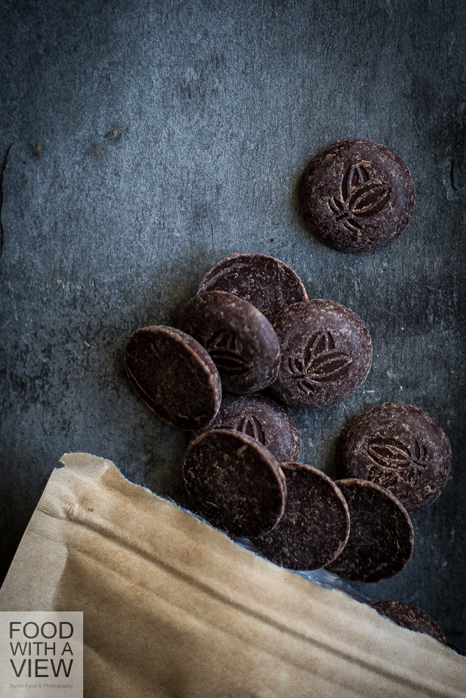 The chocolate drops have the right size for tasting – not that small like drops in high quality drinking & baking chocolate – and show a beautiful cocoa plant imprint. When I buy chocolate bars in shops, I prefer the rather flat ones since the subtle flavors unfold best this way. But this is a product for further professional processing, and here, drops are the usual way which is fine with me.