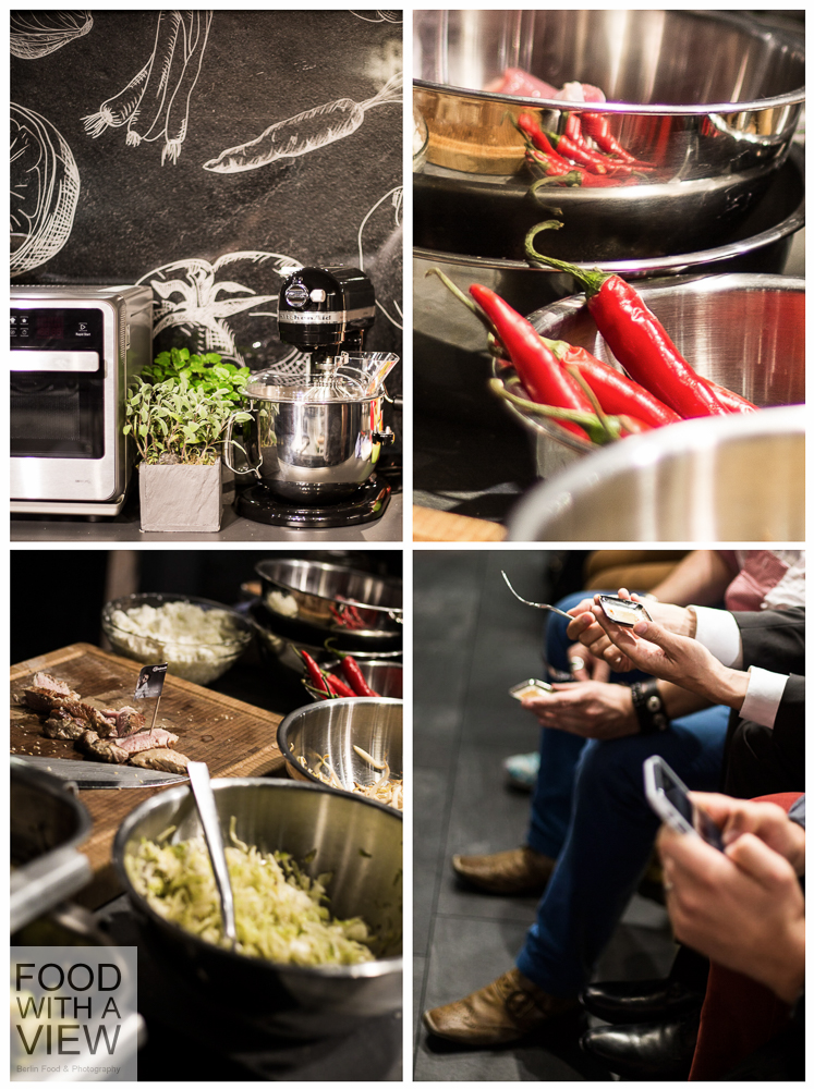 We moved further to the future, marveling at the world’s first interactive cooktop. To be honest: I’m not yet sure how I’d be able to check the precipitation radar app (balcony party), my emails (who’s going to show up) and the fridge (forgot to buy parmigiano) plus paying attention not to push the risotto casserole on the weather forecast display while cooking. But I’m totally fascinated with the vision of interacting household appliances – and the Bauknecht future study indeed opens new opportunities to food bloggers as well. How about typing notes about the pasta dough ingredients – of course our noodles are hand-made – while the cooking water is heating up, re-calculating the measurements for the desert from a blogger friend in the blogroll and telling you followers on twitter how good a match tomatoes and vanilla are? o me, this had been a highly interesting part of the tour. I’ve known about the Internet of Things since a while already, but to experience one in real life has been a highlight of the tour to me.