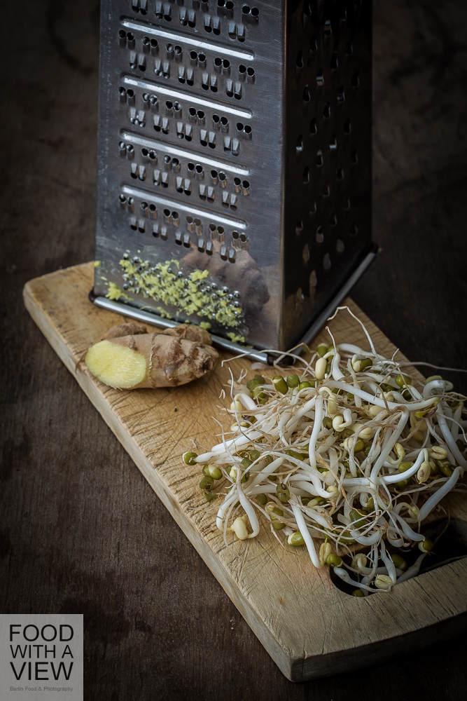 Vielen Dank an das freundliche Bauknecht-Team für den spannenden Nachmittag, bei dem ich nicht zuletzt nette bloggende Kolleginnen und Kollegen kennen gelernt habe! Alle genannten Geräte sind hier zu finden. Und wie eigentlich jedes Event hat auch dieses mich kulinarisch inspiriert, so zum Beispiel Klaus Breinigs Sprossen-Gemüse mit Sojasauce und Sesam beim Show-Kochen und die vegetarischen Mini-Döner während der abschließenden netten Happy-Hour. Herausgekommen ist zu Hause ein schnell zuzubereitender leckerer und saison-gemäßer Hokkaido-Burger – wir haben da gerade so eine Phase – mit Sprossen, Ingwer-Mayonnaise und Koriander.
