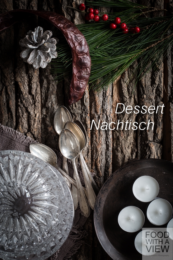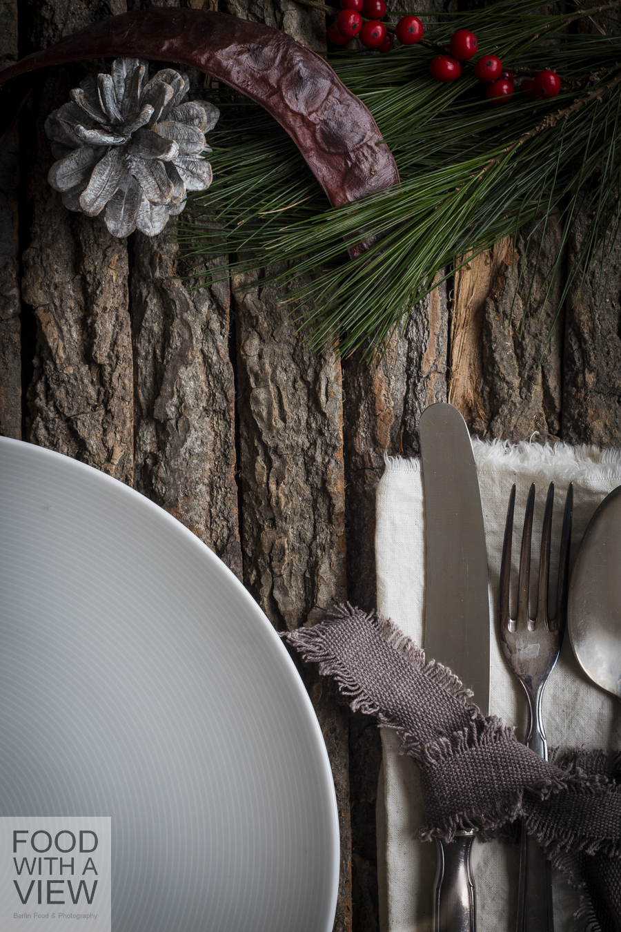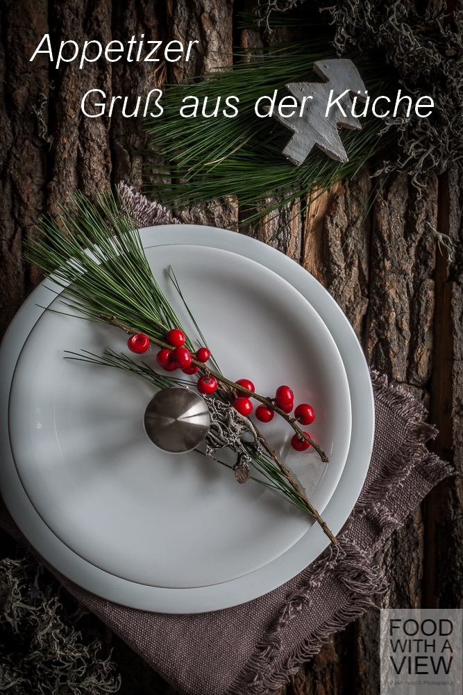 Eigentlich hatte ich dieses Jahr keinen Weihnachts-Menü-Post angedacht, aber eine Bronchitis hält mich im Moment noch davon ab, in den Offline-Endspurt vor dem Fest einzusteigen. Und so genieße ich ein paar ruhige Momente mit Ingwertee, Halstabletten und Hustensirup, habe aus ein paar noch unveröffentlicht auf der Festplatte schlummernden Rezepten mit Bildern etwas herausgesucht und mich mit einem kleinen Weihnachts-Foto-Shooting in vorfestliche Stimmung gebracht. Die Rezepte sind keine aufwendigen Gerichte zum Beeindrucken, sondern liebevoll zubereitete Kleinigkeiten aus feinen Zutaten – so bleibt Zeit für die Gäste.