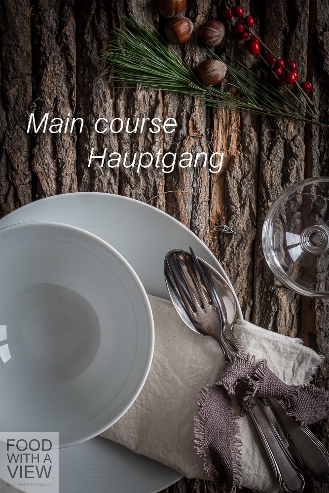 Most people will know by now what they will offer for dinner at Christmas. For those who are not yet sure, I assembled some suggestions, all of them calculated for four persons. Indeed, I haven’t planned to post a festive dinner this year, but for the moment, some crazy bronchitis keeps me from entering the offline Holiday countdown already. Therefor I enjoy some tranquility, linquus and ginger tea, I compiled some suitable recipes and pics that have been waiting yet unposted on the harddrive and warmed up for the celebrations to come with a moody photo shooting. The recipes are no showing-off dishes, just small treats with fine ingredients – they can be prepared easily so there’s enough time left to spend with family and friends.