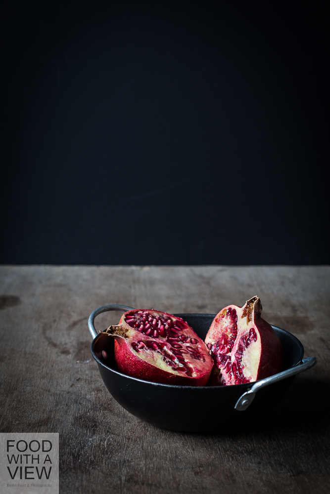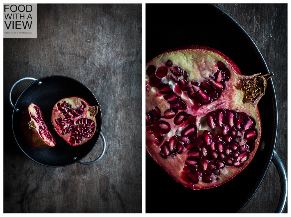In the meantime, chop stallions and herbs. Take the tarte off the oven, drizzle with olive oil and spread herbs, stallions and pomegranate pits on top. Enjoy!