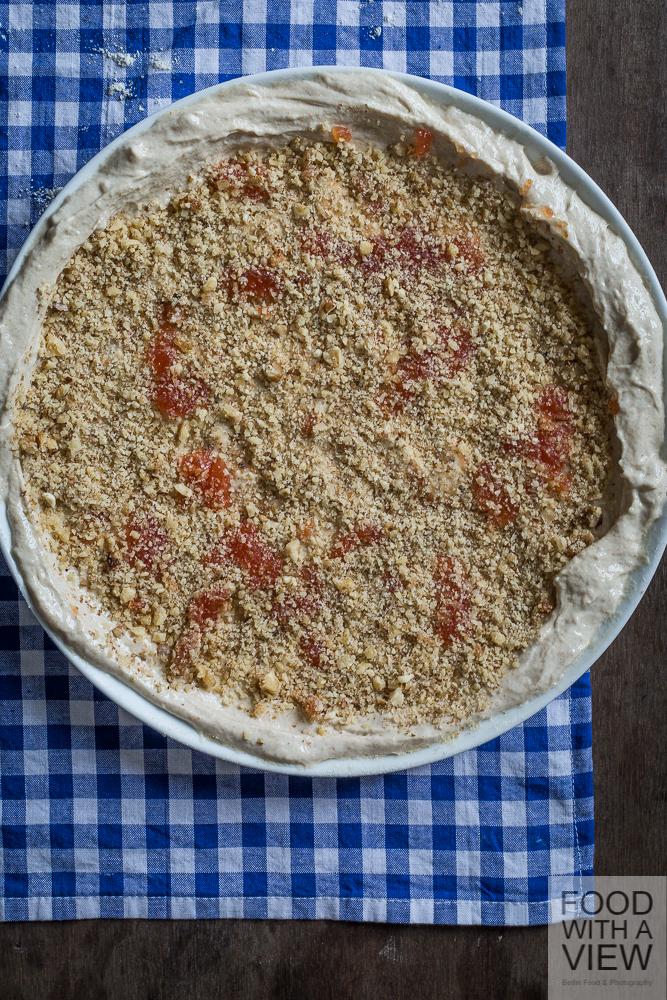 For the chermoula paste, mix all ingredients until well combined. For the tarte filling, peel the beetroots and grate medium fine, drain on a colander (otherwise, the filling will be too moist). Chop the walnuts finely in a food chopper. Clean the shallots and cut in rings, sautée in a little olive oil and put aside.