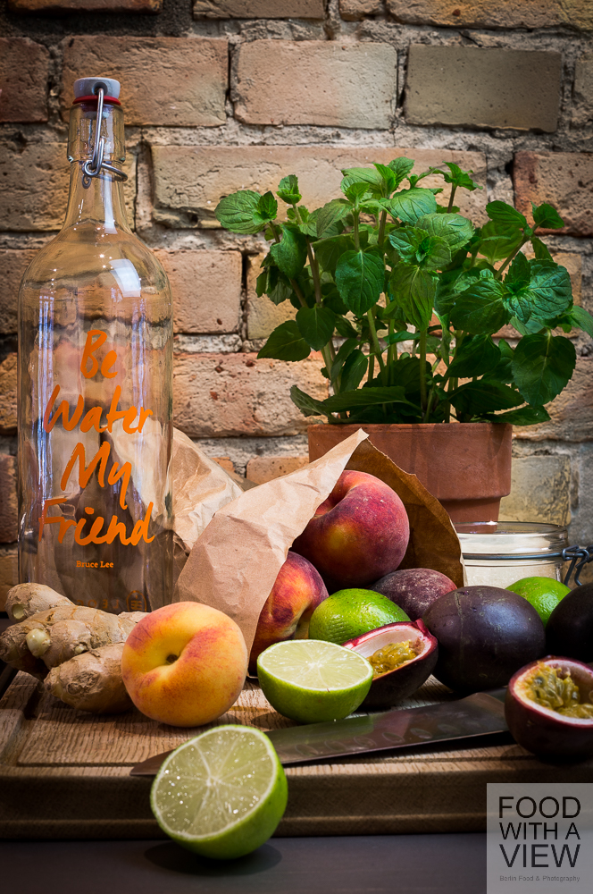 Pfirsich-Maracuja-Limonade mit Ingwer und Minze