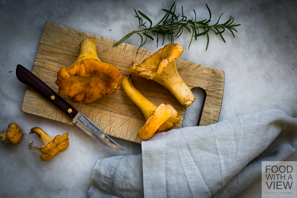 So I headed to the greengrocer while Arne prepared the photo set. Later on, inspired by Virginie Besançons lovely book „Meine Sonnenküche“ which is among my alltime favourites and is also much beloved by Arne, we created some Provençe-inspired tartelets – with a crust made with olive oil, some onion confiture with elderberry vinegar as a spread and and of course rosemary from the balcony. It’s a real match, the earthy flavor of mushrooms combined with the hearty and sweet confiture and the warm and dark shade of elderberry. We had pine nuts for the vegan gentleman and parmigiano for the vegetarian lady as a topping and were both very content – besides the fact that those delicious little tartelets are eaten off so very quickly…