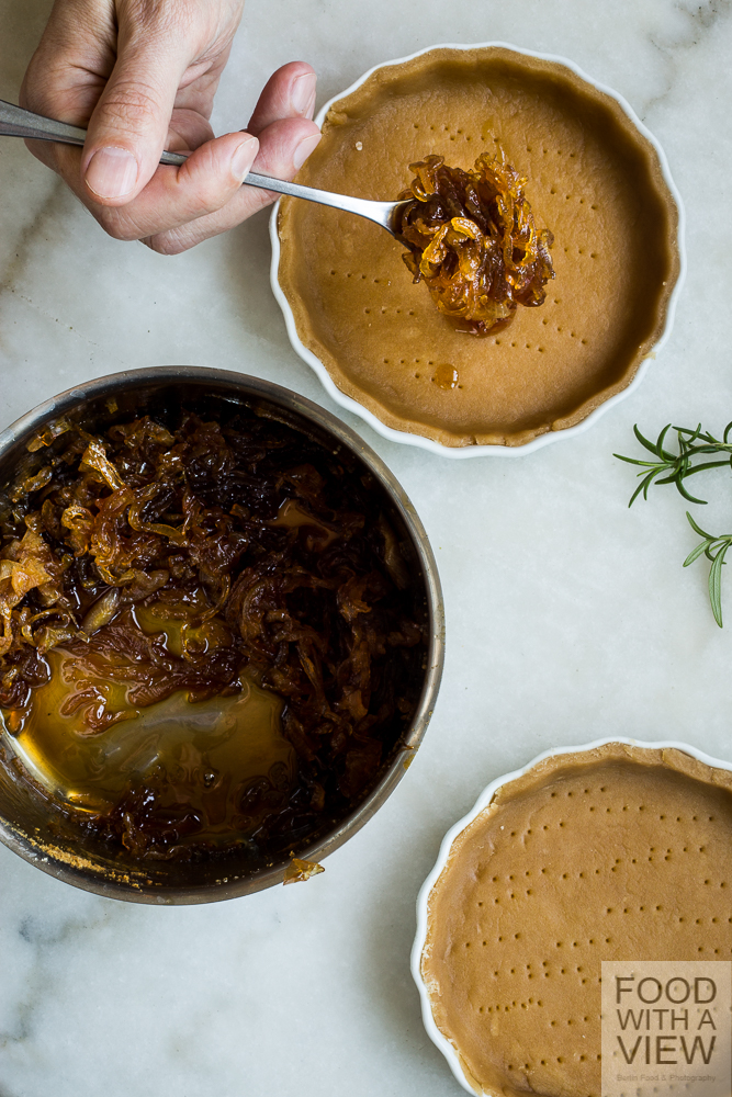 Rezepte für Teig und Zwiebel-Konfitüre abgewandelt nach: Virginie Besançon, Meine Sonnenküche