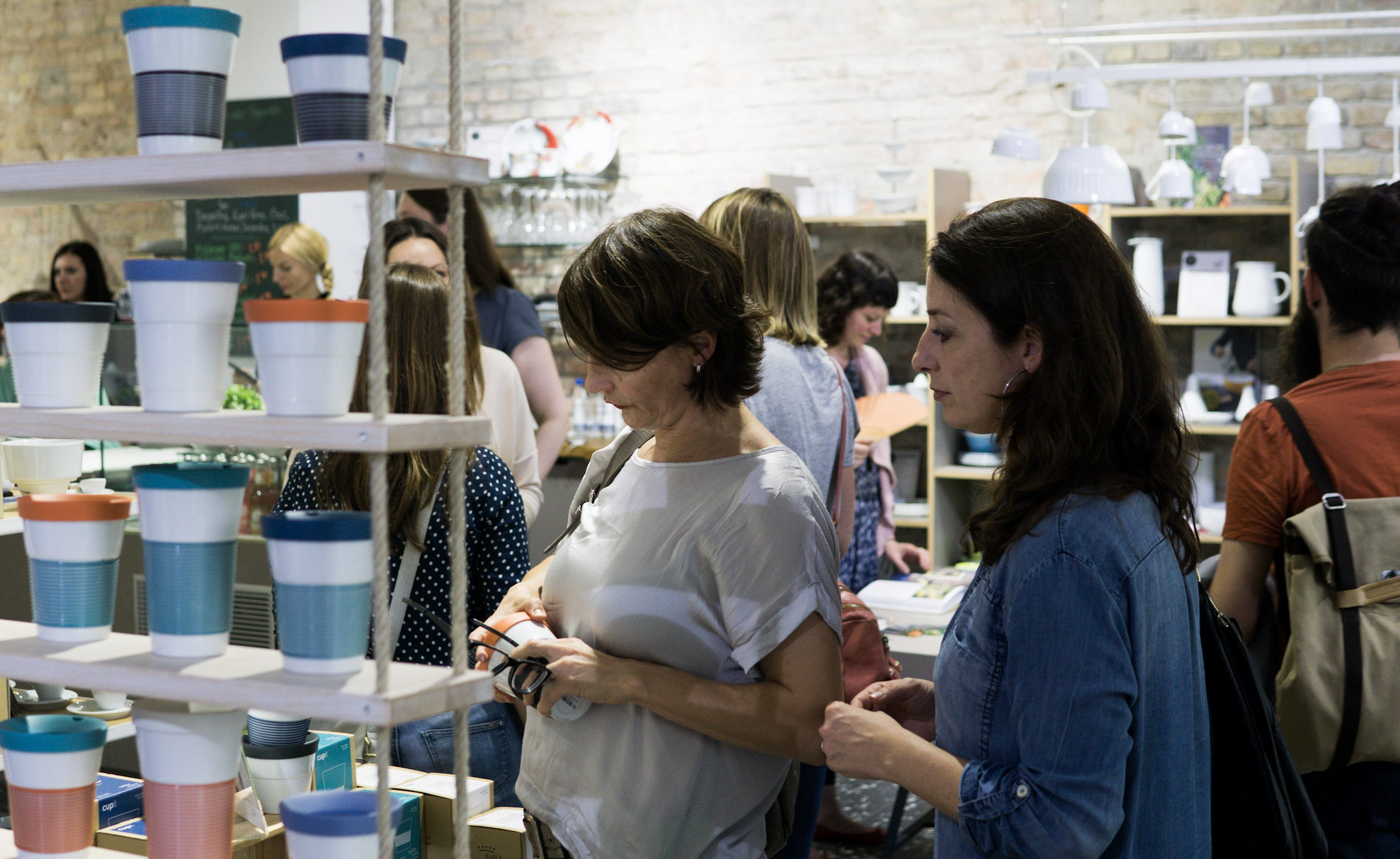 Der Abend neigt sich immer weiter, und wir machen es uns alle gemütlich – denn es gibt wohl keinen zweiten Porzellanladen in Berlin, der so viele lauschige Eckchen bietet, in den man plaudern und schmökern kann, um sich danach am Tresen zu treffen auf eine finale Avocado-Schokoladen-Tarte mit einem Kaffee. Genauso hatten wir uns das erträumt. Und sagen von Herzen danke: Unseren wunderbaren Gästen, darunter langjährige Freunde genauso wie Menschen, die wir erst an diesem Abend kennengelernt haben – ihr alle wart uns eine unglaubliche Freude. Saquira Ocampo und Astrid von Team KAHLA, und vom Team Knesebeck-Verlag unserer PR-Leiterin Christin Nase, unserer Projektleiterin Susanne Caesar und unserer Grafik-Designerin Leonore Höfer, die alle den ganzen Tag mit geschnippelt, gegossen, angerichtet, geräumt und verpackt haben – ohne euch hätten wir das niemals geschafft. Auch unserer Barista-Vize-Meisterin Nicole von der Röststätte Berlin einen herzlichen Dank für wunderbaren Cappuccino & Co.