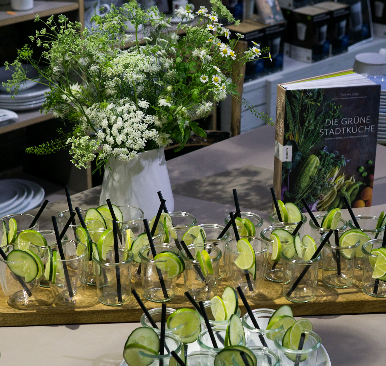 Irgendwann kehrt Ruhe ein – endlich Zeit für Dankes-Post. Und für ein paar kleine Leckereien, die übrig geblieben sind: etwas Creme hier, etwas Topping dort und ein kleines Wildkräuter-Sträußchen. Ganz im Sinne von no waste landet all das natürlich nicht im Müll – ünberhaupt sind Reste-Essen ja oft die besten. Denn beim Zubereiten und Anrichten ist alles wieder da ist, die Aufregung, das Glitzern, die Herzenswärme unserer Gäste. Es gibt keine schöneren Reste-Essen als die nach einem glücklichen Abend, an den man noch lange zurückdenken möchte. Unser Book Launch von Die grüne Stadtküche im KAHLA Flagship Store in Berlin ist so ein Abend gewesen.