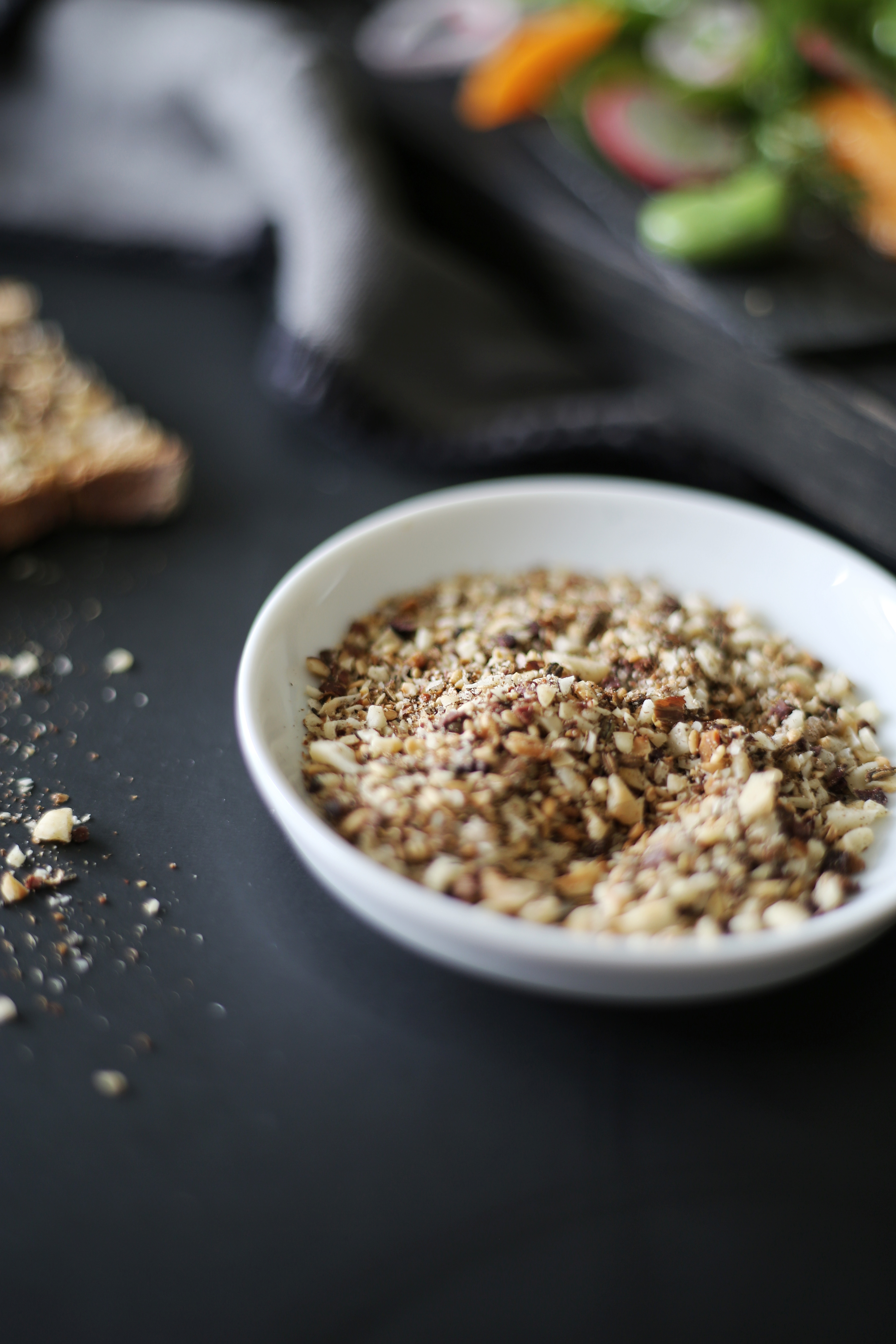 Dukkah kannte ich bisher garnicht. Ich bin voll raus …. aber ich hatte fast alle Zutaten nebst Kakao Nibs da, peste noch schnell zu Bioladen um Haselnüsse zu besorgen und habe soeben geröstet und geschraddelt.