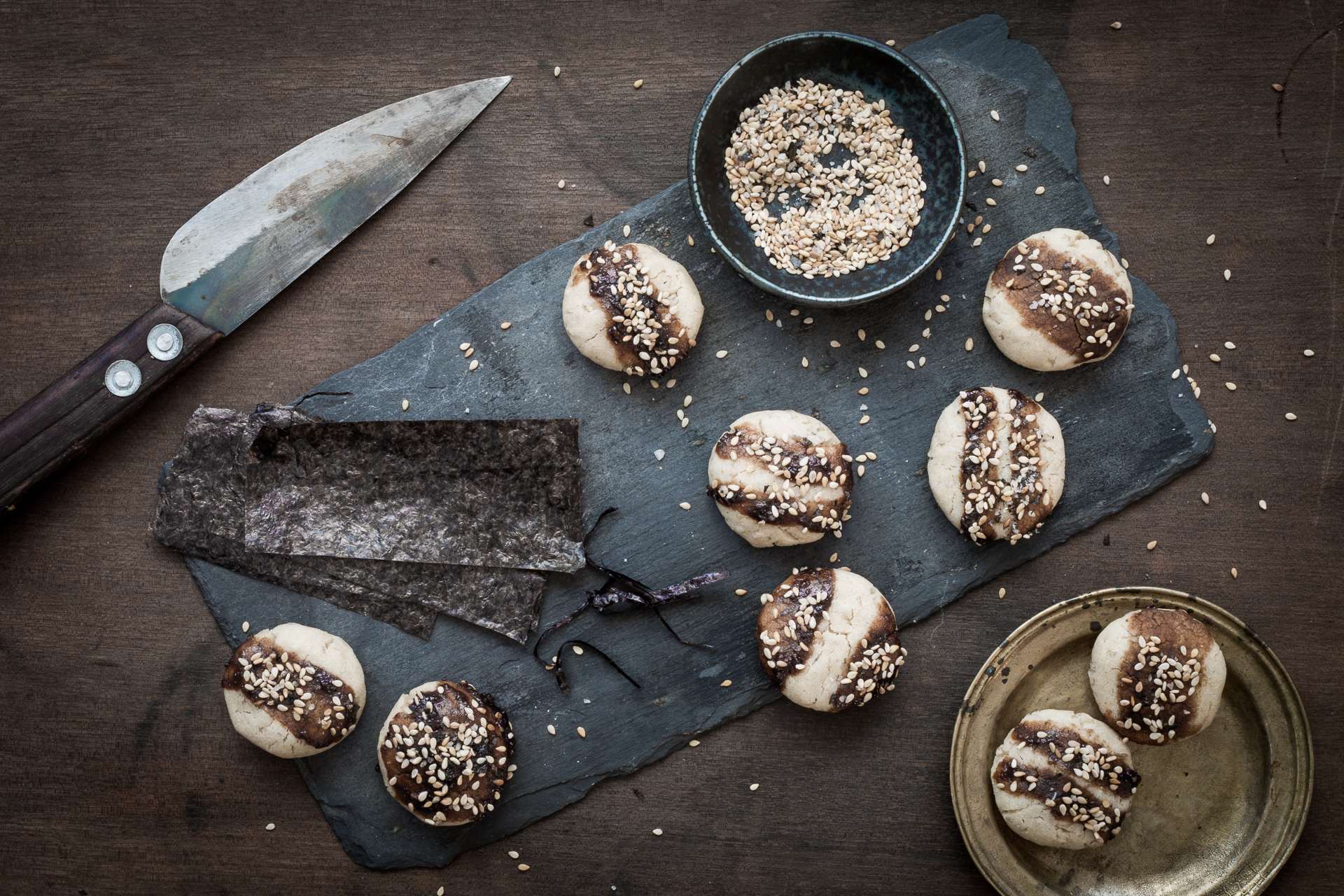 Everything is better with butter? No, everything is better with miso! Really, everything? – that’s what you might think right now, don’t you ;-). And yes, we can tell you, it’s true. It’s because of a wonderful book by the likewise wonderful food blogger Claudia Zaltenbach of Dinner um Acht that we came across the umami boosting qualities of miso far beyond the soup of the same name. It has been published in German language only so far, hence you find the review only in the respective language section below. Nevertheless, we share a wonderful recipe from the book with you. Ever had Senbei? If yes, we’re sure you never had it this way before. It’s a delish snack for in between, even for coffee, if you are more on the spicy side of life rather than a sweet tooth, and the fierce ones will try it even for breakfast… So here we go with Japanese rice crackers!