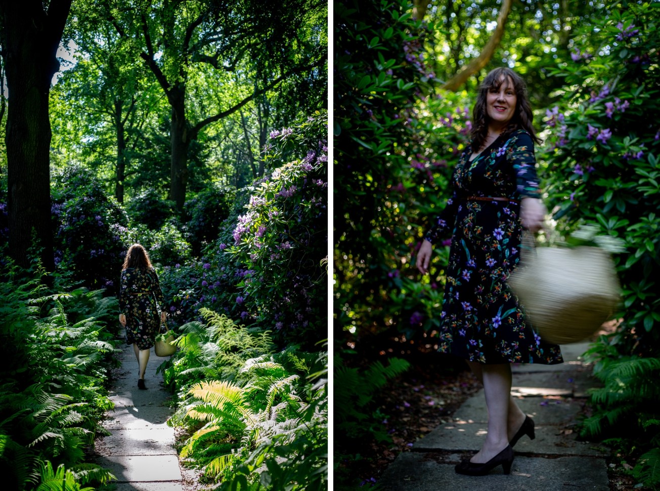Da wir ja ohnehin die Kamera dabei hatten (und ich für die Holunderfotos extra ein geblümtes Kleid angezogen hatte 😉 ), haben wir die Gunst der Stunde genutzt. Ich habe mir einen Spaß daraus gemacht, zwischen den wandernden Fontänen herumzuspringen, und Arne hat diese Momente festgehalten. Wir möchten sie hier gern mit euch teilen, obwohl es ja eher selten für uns ist, selbst in unseren Fotos zu erscheinen. Aber wir stellen doch auch immer wieder fest, dass eine (Stadtnatur-)Landschaft mit Menschen darin mehr oder anderes auszudrücken vermag als die Szenerie allein. Pure Lebensfreude zum Beispiel …
